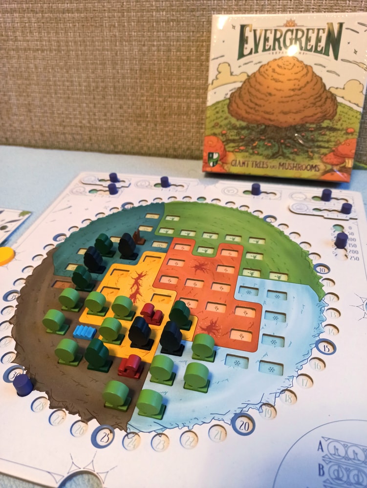 Самое яркое впечатление прошедшей недели - долгожданное дополнение Гигантские деревья и грибы к любимому Evergreen. Лавка игр обещала в этом году локализацию двух дополнений к этой игре, в итоге все уже перенеслось на следующий год, зато теперь обещают сразу 3 дополнения вместе со свежевышедшим. Я не стала ждать у моря погоды, чему очень рада, так как партий в базу у нас наиграно очень много, думаю, эта коробка после Крыльев может занять почетное второе место по наигрышу в коллекции.