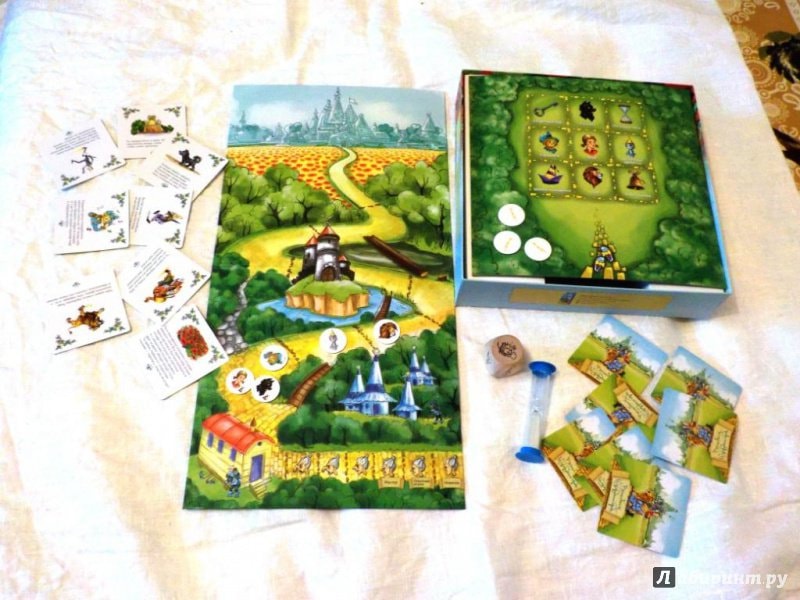 1. Волшебник изумрудного города - кооперативная игра, где игроки вместе пытаются добраться до изумрудного города. Игроки вместе передвигаются по полю, выполняя различные задания. Игра заканчивается либо победой команды (если все персонажи дошли до Изумрудного города), либо проигрышем, если злая колдунья Бастинда нагоняет одного из героев.