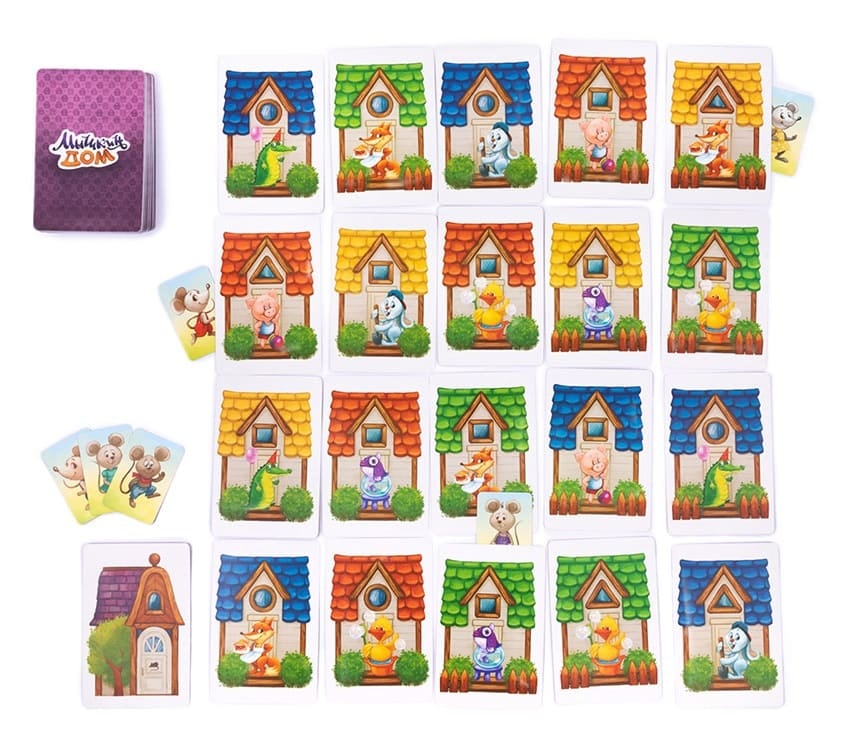 9. Мышкин дом - это развивающая игра на внимание и память для детей от 4 лет. Игра у нас давно но ранее в обзоре о ней не писала, в игра 2 варианта Первый вариант на внимание или понять какой домик исчез, или вопросами узнать где спрятался мышонок. Второй вариант на перемещение мышат по полю, используя карточки со стрелками. Нужно внимательно следить за стрелками, чтобы привести мышонка в нужный домик. Сейчас в основном играм в вариант с перемещением.