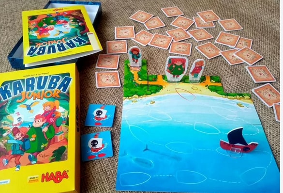 14. Каруба Джуниор - кооперативная семейная настольная игра от компании хаба, упрощённая версия оригинальной игры «Каруба». Игроки сообща прокладывают путь к сокровищам по острову, населённому тиграми, стараясь опередить корабль пиратов. Простенькая игрушечка, но очень приятная, можно прям лет с 3,5 спокойно пробовать.