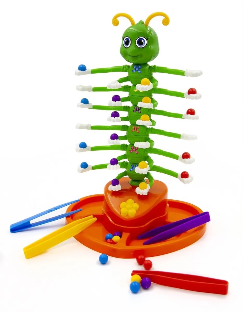 20. Танцующая гусеница - активная развлекательная игра, где игрокам нужно с помощью пинцетов размещать разноцветные шарики на лапках движущейся гусеницы – сложно даже мне – интересная игра.