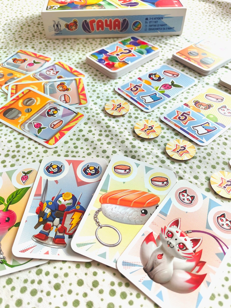 Сыграли втроем в Гачу. Простая быстрая игра на сбор сетов. Дети обожают всë "кавайное", поэтому игра сразу получила плюс балл😂. К тому же нравится азарт от того, какая "игрушка" тебе достанется!