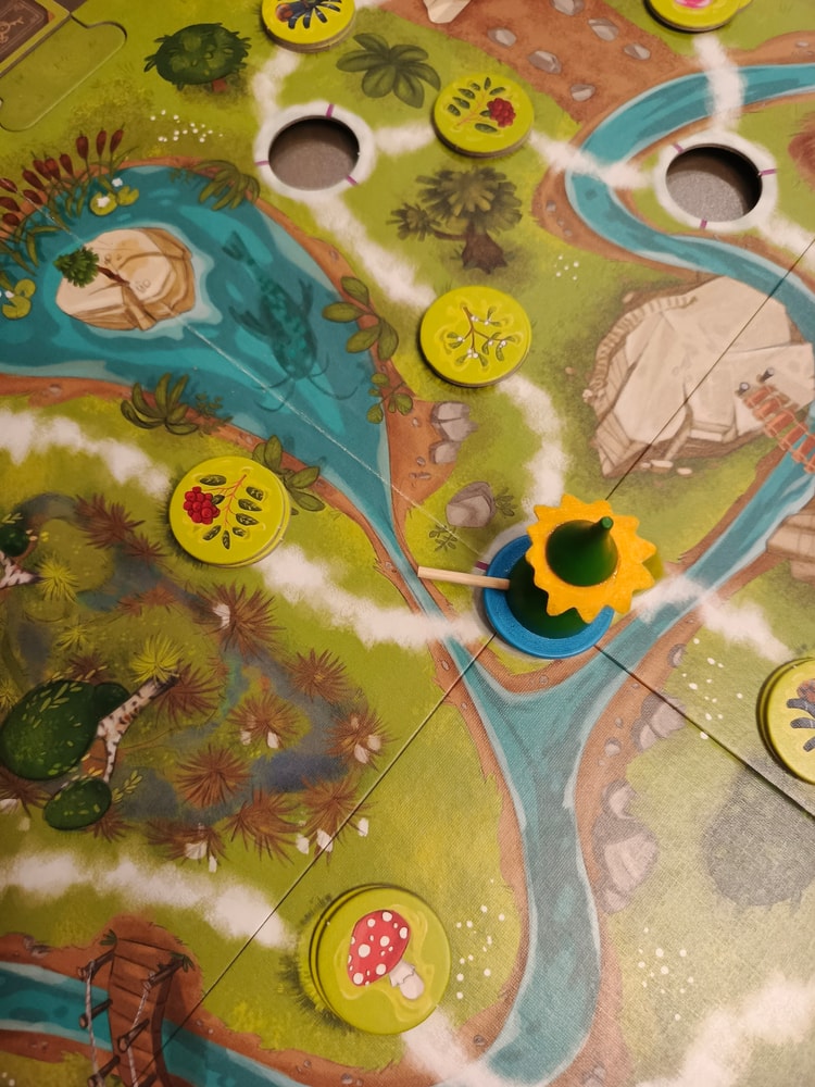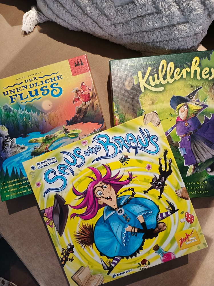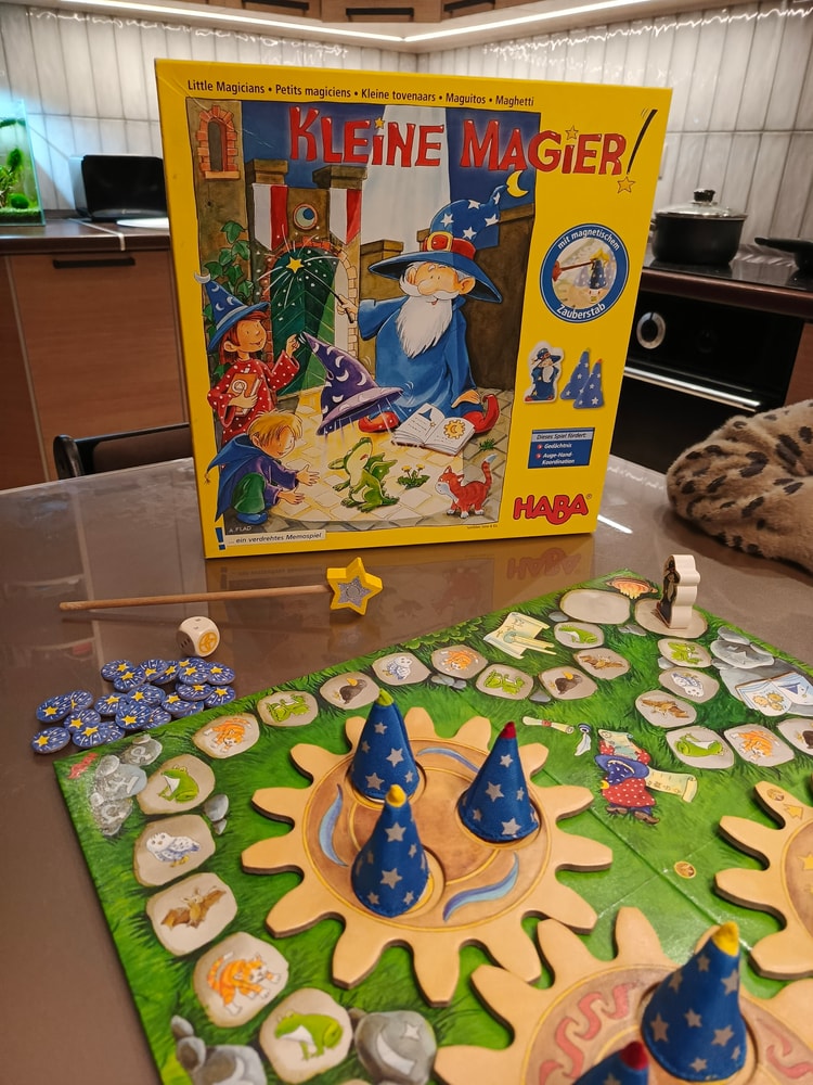 Следующей коробкой стала Saus und braus. В этой игре мы летаем на метле и собираем нужные ингредиенты. Но мало просто над ними пролететь, их ещё надо открыть в нужной книге заклинаний. Если угадали, то берите ингредиент в свой котел, если нет, то он перемещается на другое место.