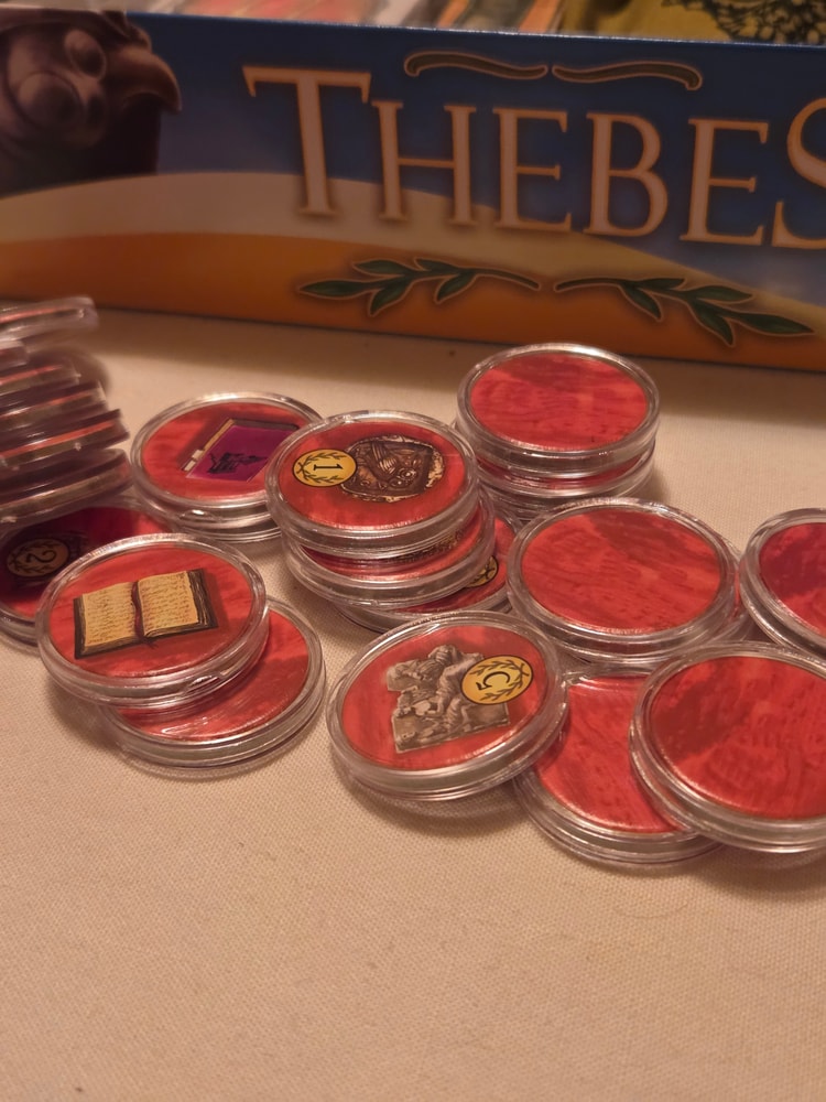 P.S. А фивские жетоны я в итоге запихнула в пластиковые капсулы для монет размеров 30 мм. Подошло впритык, но доставать их оттуда я всё равно не собираюсь, если что, так и продам)