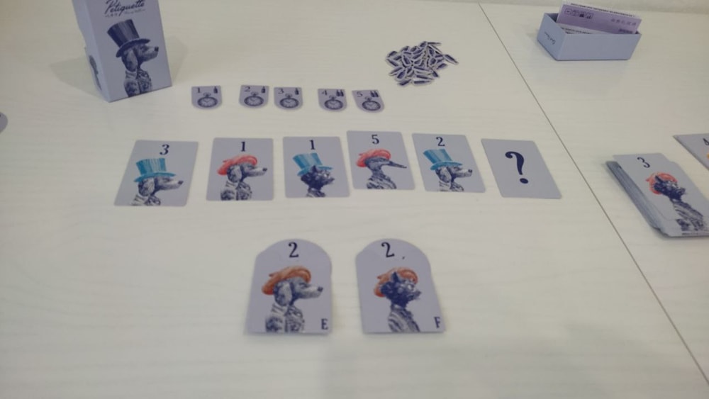 Все игроки, пользуясь своими картами, должны решить какое животное будет вместо знака вопрос, соблюдая при этом одно правило. Животное не может быть таким же как уже на выложенных картах. Т.е. что-то одно, хотя бы число или шапочка, или вид животного должен быть другим.