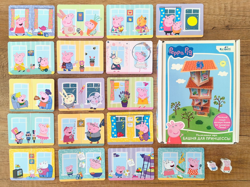 Башня для принцессы, аналог Суперносорога, универсальная игра - и детям интересно, и в компании взрослых очень весело! На каждой карточке забавные рисунки из жизни Пеппы и ее семьи.