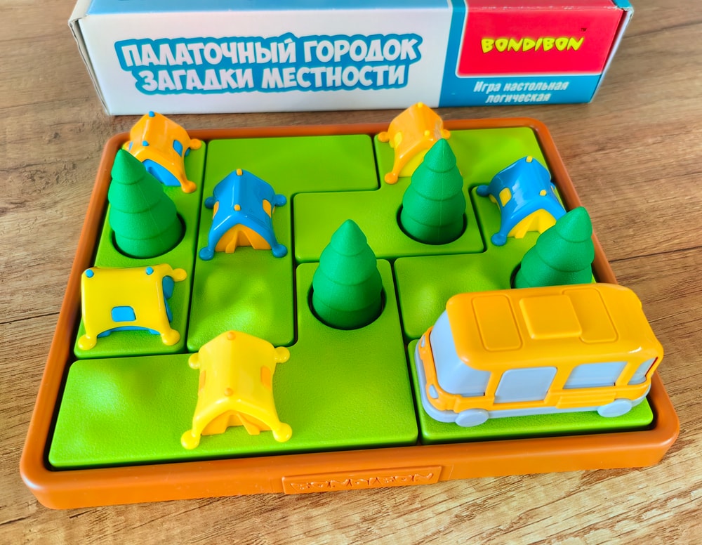 Головоломка Палаточный городок оказалась очень простой, но разве это главное, когда такая красота на столе! Эти палатки, деревья, автобус - всë такое тактильно приятное😍. С удовольствием решала, кайфуя не от мозголомности, а от ощущений и визуала👍!