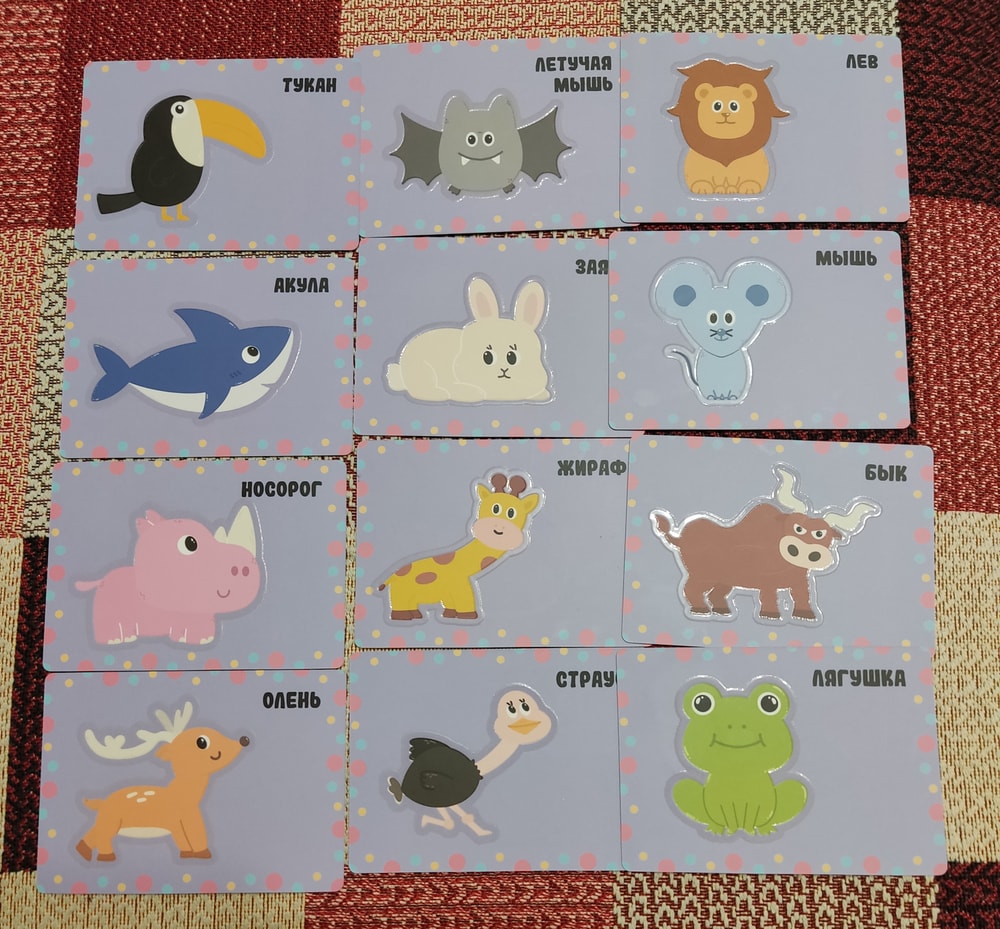 А у мальчика, наоборот, получалось нащупать верных животных. И снова моя мышь оказалась слоном 🤣 А потом мои пальцы привыкли, приспособились и начали точно различать особенности животных. А у мальчика, наоборот, пошли одни ошибки. В общем до конца занятия я набрала 12 карточек, а мальчик только семь 😊