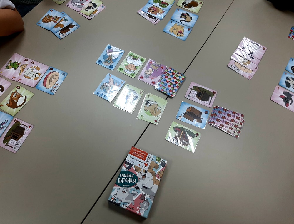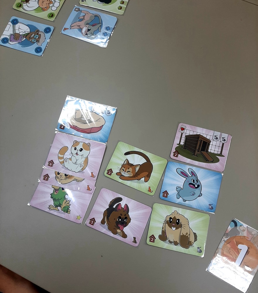 Каждый игрок в свой ход берет 2 любые карты на выбор из колод с питомцами и с заботой. Затем карту животных можно сыграть с руки, и, проявив заботу, то есть спросив нужные именно этому питомцу карты заботы, перевернуть карту на счастливую сторону.