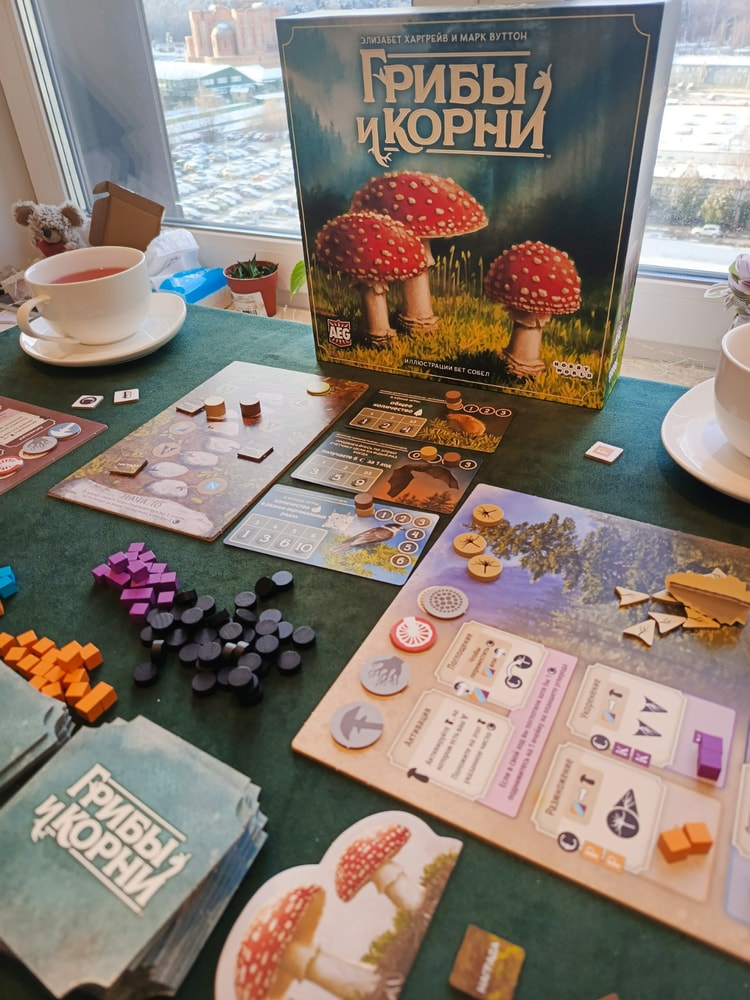 Первой была Грибы и корни. Давно ее приметила, ждала локализацию от хобиков. Пока ждала, начиталась отзывов противоречивых и передумала. После выхода покупать ее не планировала, но попалась хорошая скидка и я не устояла.
