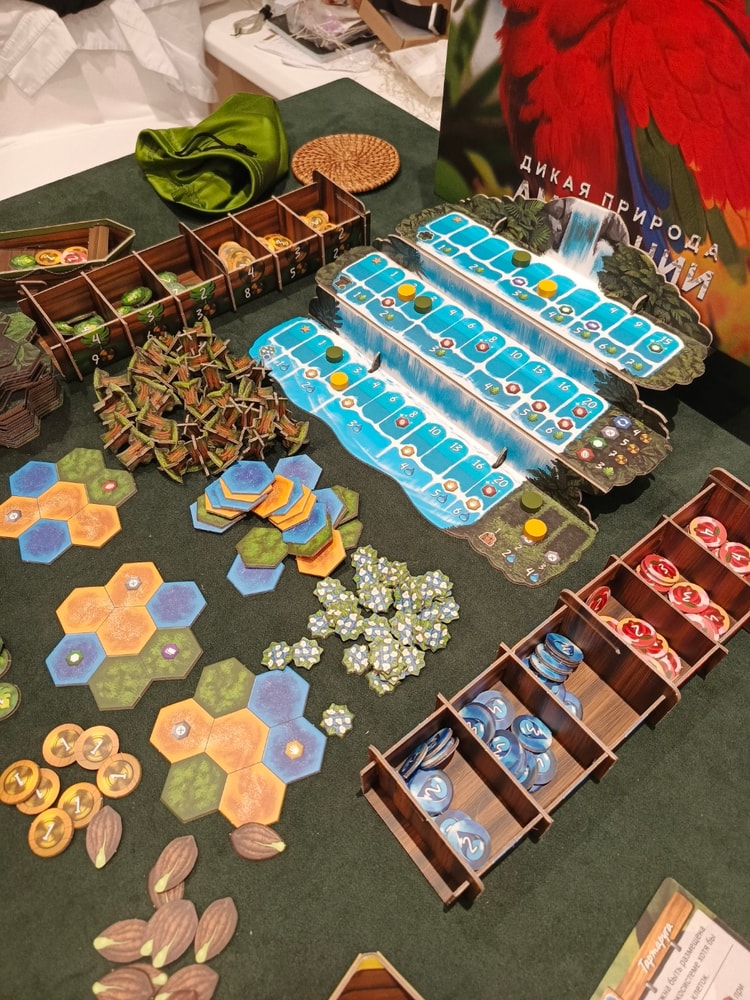 Следующей коробкой была Дикая природа Амазонии, тоже набитая под завязку компонентами. Ее судьбу я тоже давно отслеживала, наконец-то хобики ее локализовали.