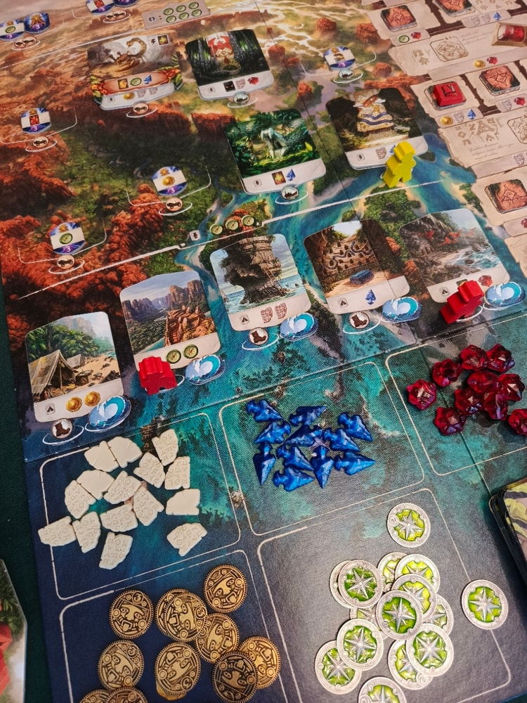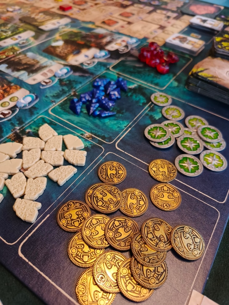 Эта игра мне понравилась намного больше Корней, но у нее есть один минус - она под затянута и длится достаточно долго. На протяжении всей парти мы выполняем примерно одни и теже действия. Получилась какая-то смесь Каскадии с Шарлатанами, за счет выстраивания ареалов обитания и покупки ресурсов в мешок. Компоненты очень красивые, деревяшек много и выглядит все очень эффектно.