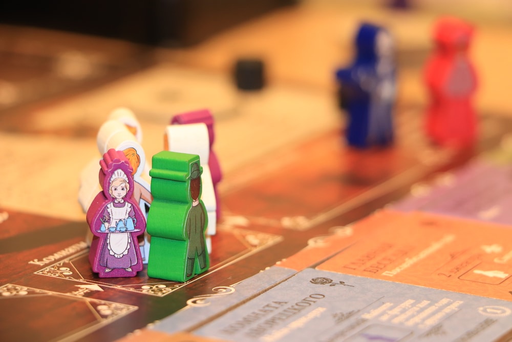 Для каждого мероприятия нужны слуги определённого цвета-этих слуг вы отправляете на работу в эту локацию. Зовёте на мероприятия гостей-аристократов, многие из них тоже требуют слуг для прислуживания. Механика-выставление рабочих. Гости –аристократы после посещения ваших мероприятий одаривают вас разными бонусами: репутацией, деньгами, картами других гостей, картами целей и победных очков. Есть и не очень хорошие гости- они у вас могут отнимать победные очки, деньги и репутацию. Ваша цель, во-первых, собрать как можно больше карт гостей на конец партии, они принесут вам победные очки, во-вторых, избавиться от плохих гостей, а в-третьих, разыгрывать карты гостей как можно выгоднее, чтобы собрать как можно больше «плюшек» с них. То есть в игре присутствует механика колодостроя.