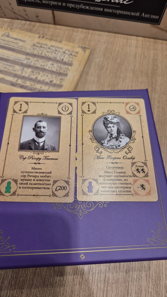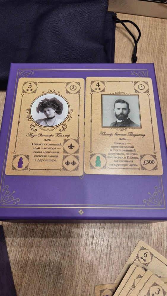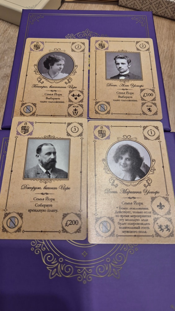 А вокруг вас живут другие аристократы, одни более богаты и влиятельны, другие менее- это колоды с картами гостей: