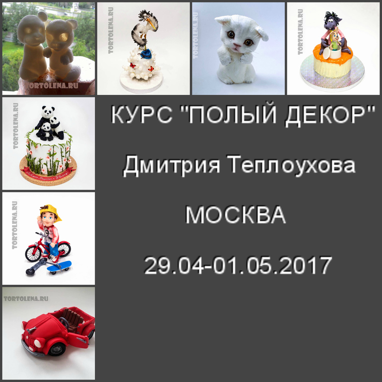 Уважаемые коллеги, приглашаю Вас научиться создавать сладкие фигурки для своих тортиков по авторской методике Дмитрия Теплоухова в технике ПОЛЫЙ ДЕКОР в Москве. ПОЛЫЙ ДЕКОР- уникальная возможность создания технически правильного, безопасного, полностью съедобного декора для торта.