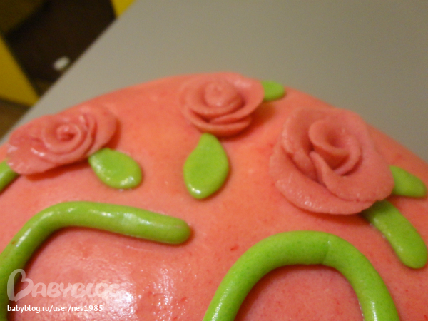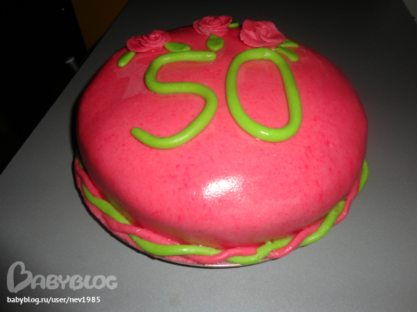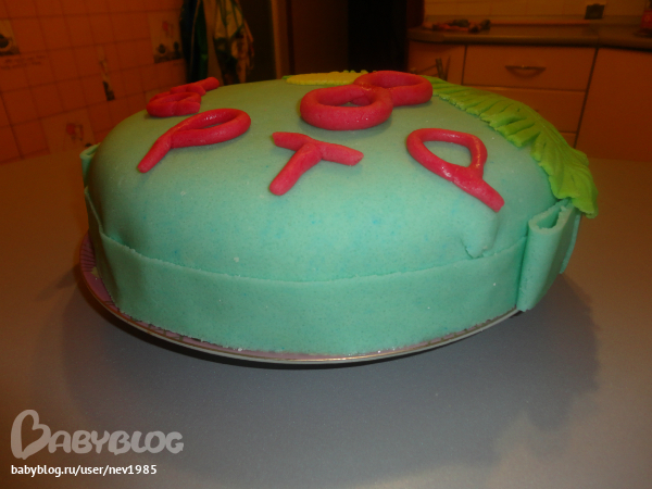 Первый опытНедавно у свекрови был юбилей и я решила ей испеч тортик с мастикой. вот такой он получился.