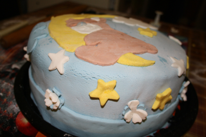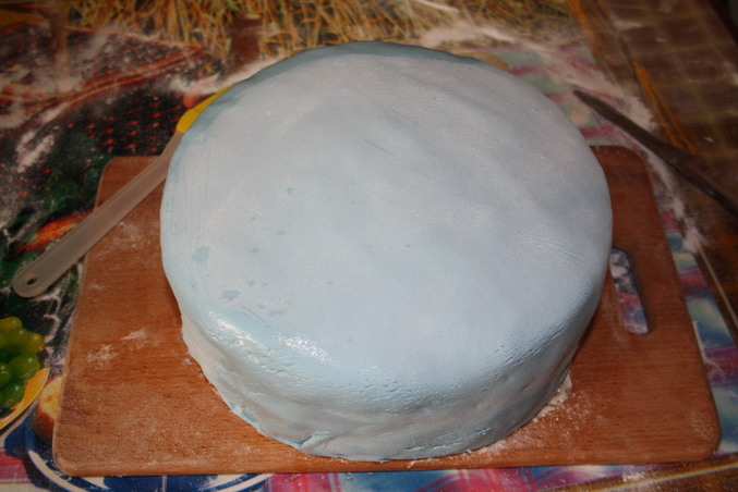 Первый опытвот и воплотила я в жизнь свою идею ко дню рождения малыша. коржи печь тренировалась пару недель, получились очень хорошо, а вот с мастикой работала впервые. она у меня была покупная. самой большой проблемой было покрасить мастику, красители у меня сухие, и обтянуть торт. раскатывала 4 раза, то тонко, то сахарной пудрой не присыпала. видимо от того что каждый раз присыпала сахарной пудрой мастика потрескалась((( залатывала дыры как могла. и теперь сладкого не буду есть наверное месяц. ну и мой корявенький первенец