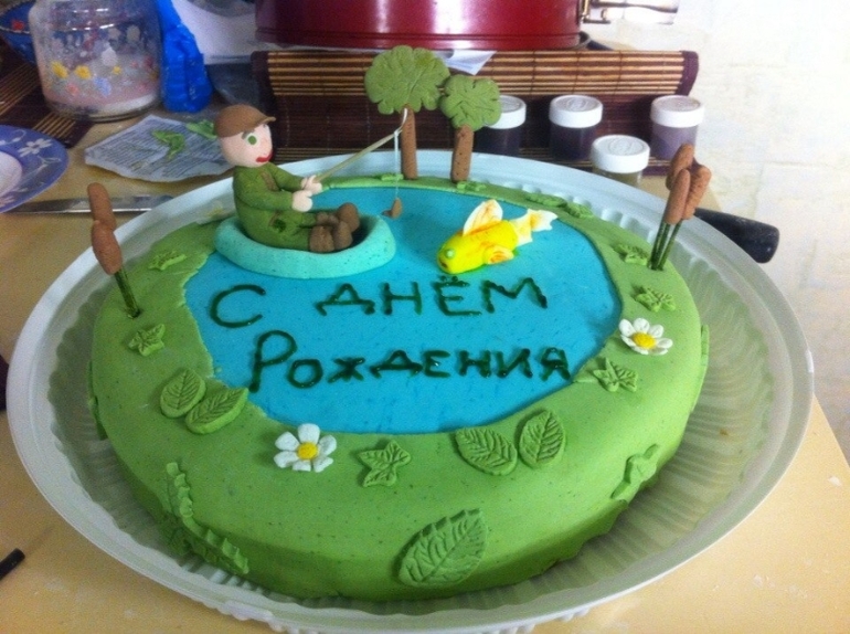 P.S торт с рыбаком 1 в жизни торт с мастикой)))