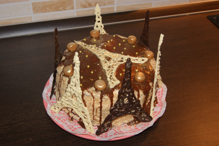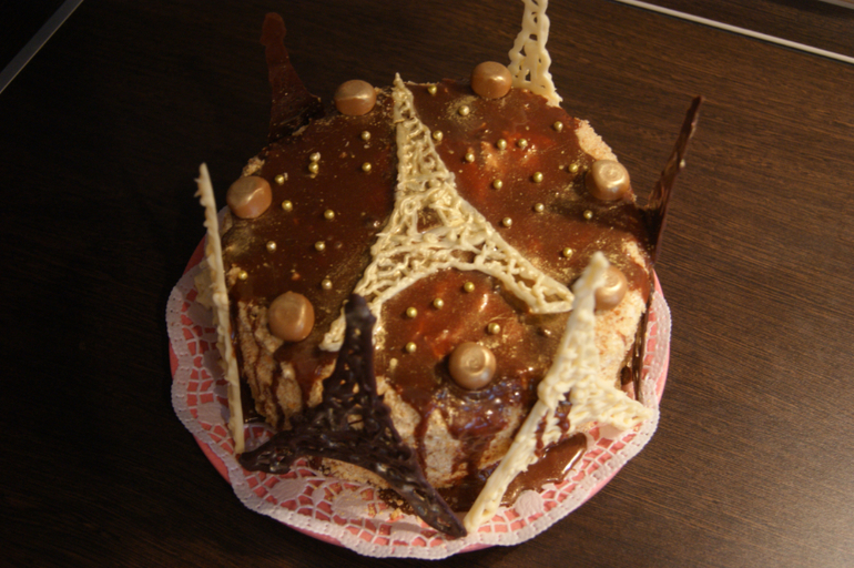 а мне нравится! очень похоже на эйфлеву башню)разрез аппетитный! а что за начинка внутри?