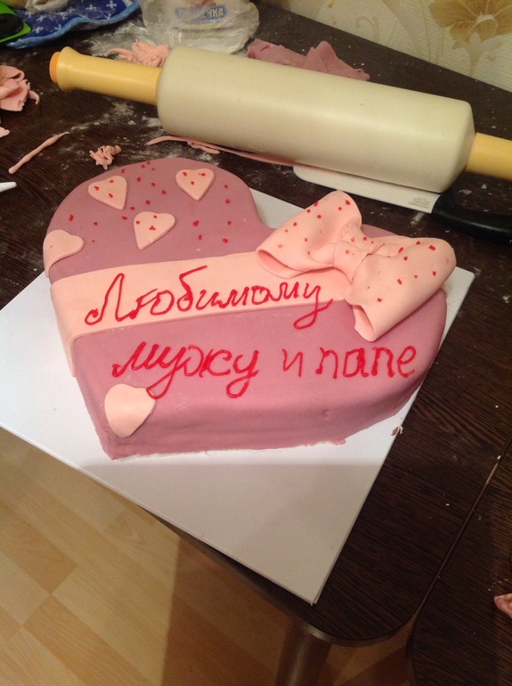 Первый опытсразу скажу что это второй торт в моей жизни и первый мастичный))) делала с любовью нашему папочке торт наполеон. Выставляю на суд))) и прошу подсказок, обтягивала мастикой из смеси , но когда покрасить красителем то цвет получился грязный. Почему? Как исправить? И он такой не лашенный что ли, чем те что я видела в сообществе, почему? Не аккуратный это я знаю, но очень торопилась , дочь под ногами мешается постоянно. Бант из мартышковой мастики