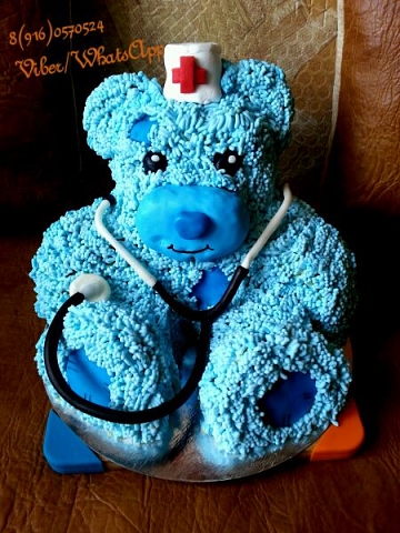 Внутри у медвежонка 2 вида бисквита: ванильно-ореховый и шоколадный, пропитка вишневым сиропом, прослойка шоколадного ганаша, крем сливочно-сметанный с вишней; вес 4,5 кг