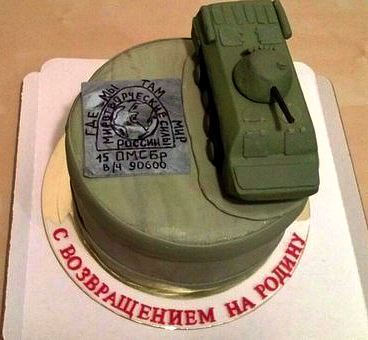 История торта- У заказчицы парень в миротворческих силах в Сирии, возвращается завтра, просила торт с БТР и как-то такую надпись сделать