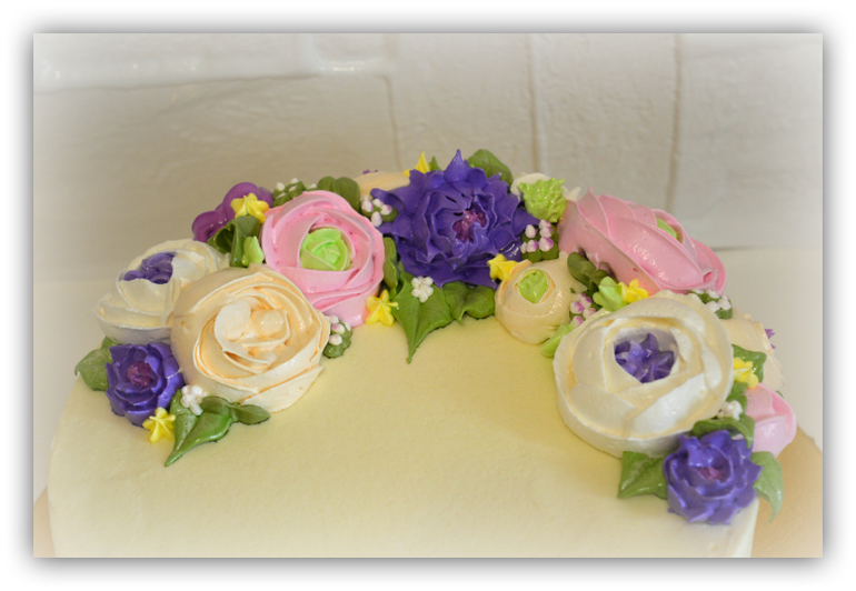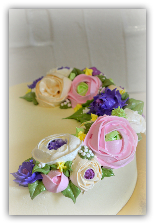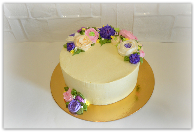 Торты на заказКремовый тортик с цветочками. Внутри спрятался "Наполеон" с венгерским заварным кремом. Вес 3300г Фигурку уже раньше показывала, поэтому дублировать не буду, а покажу под катом еще парочку фото кремовых цветов с тортика. Фигурки специально положила на кусочек мастики, чтобы сохранить куколку.