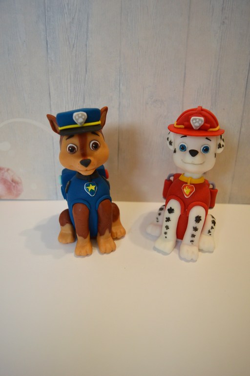 Фигурки из мастикиМои очередные фигурки щенков популярного на сегодняшний день мультфильма. Ни один заказ не обходится без Гончика или Гонщика (не знаю как правильно) по-разному пишут. В этот раз в компании с ним был еще Маршал.