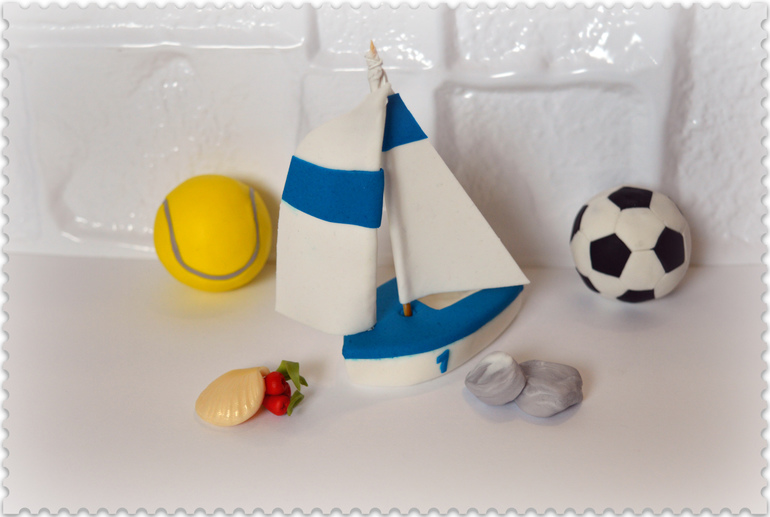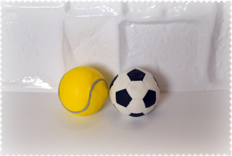 Эти фигурки лепила по определенным размерам, которые мне указали, поэтому теннисный и футбольный мячи одного размера.![]()
