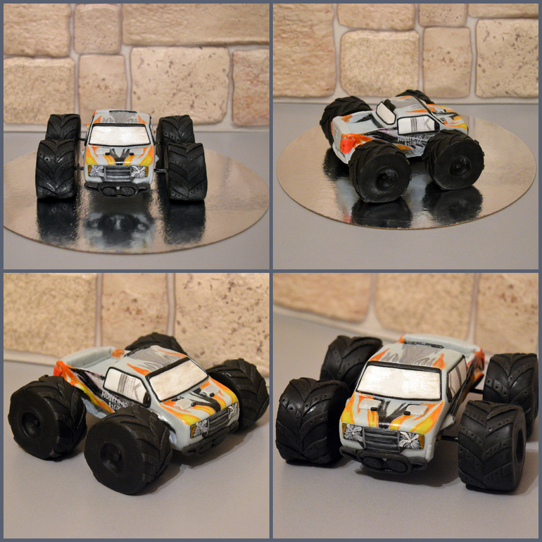 Что нужно четырехлетнему мальчугану в день рождения в качестве подарка? Большинство, наверное, ожидают новую навороченную модель какой-то машины, а если ее еще и можно будет съесть, то радости ребенка не будет предела )))) Машинок много не бываетФигурка машины Монстер Stem. Лепила по присланному фото. В оригинале эта игрушка на пульте управления, но его решили не делать.