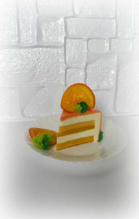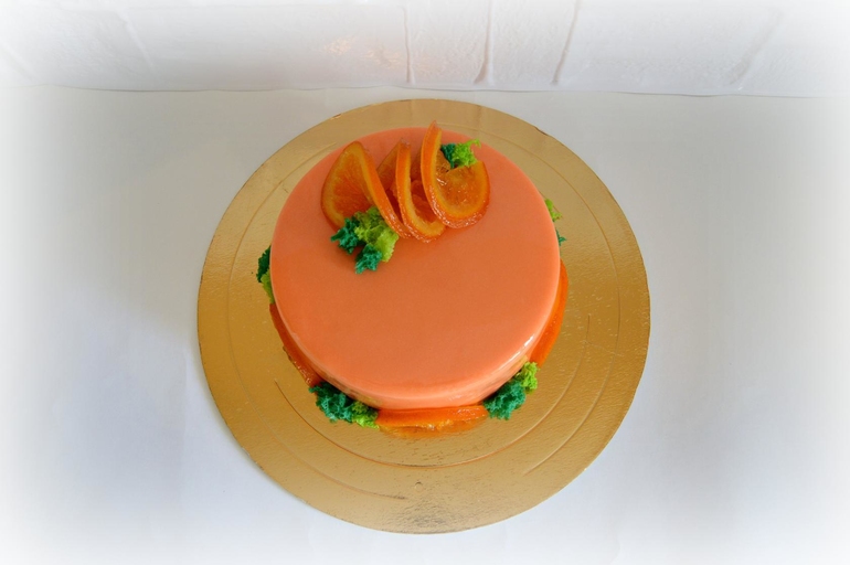 Торты на заказЯркий и солнечный морковный торт в современной интерпретации. Брауни с морковью и белым шоколадом, нежное бархатное креме из моркови, яркая нотка компоте из апельсина, волшебный мусс на белом шоколаде с апельсиновой цедрой, зеркальная глазурь, карамелизированные апельсины. Вес 1500 г.