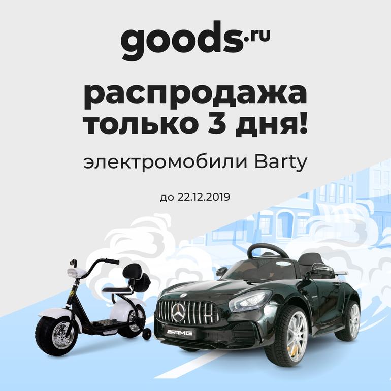 Подыскивайте новогоднюю елку побольше, ведь у нас распродажа электромобилей Barty. Для тех, кто хорошо вел себя в этом году: