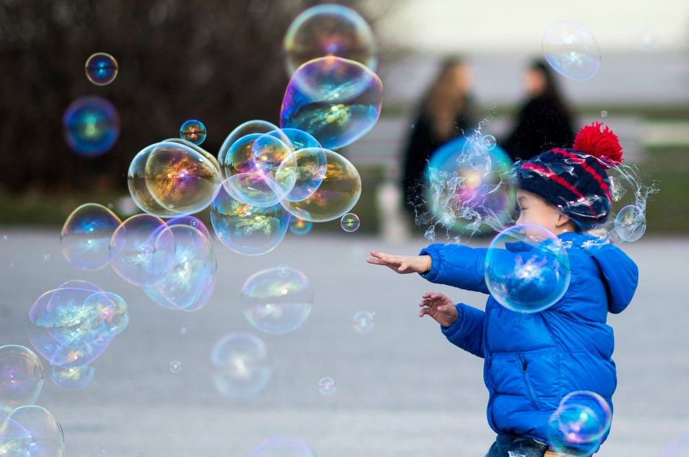 Возьмите с собой баночку : в лучах солнца они будут переливаться и мерцать, чем доставят удовольствие и радость не только детям, но и взрослым. Удивите детей гигантскими мыльными пузырями, которые, лопаются, образуя тысячи мелких капель воды! Малыши обожают догонять улетающие пузырьки, да и само их появление вызывает у них восторг. Играть будет веселее, если все будут пытаться дольше удержать мыльные шарики в воздухе, дуя на них снизу.