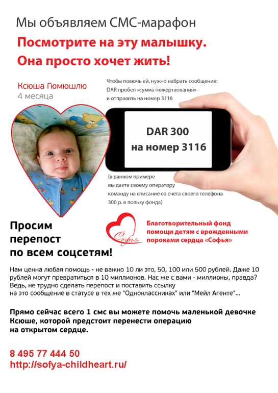 1.СМС-сообщение на номер 3116 со словом DAR и суммой пожертвования
