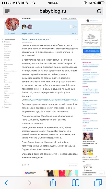 У самой Ольги все хорошо, муж работает в Омске, сейчас родит и поедет к мужу.