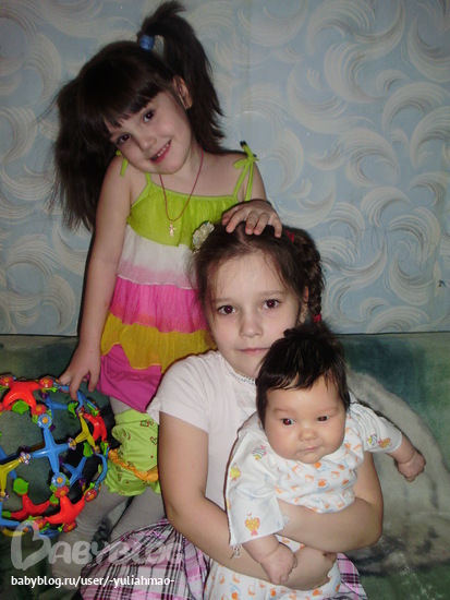 Старшая доча Вероничка старается мне помогать и няньчиться без устали с самой младшенькой,то придет покачает,то разговаривает с ней подолгу или начинает играться)))) Средненькая Ангелинка пока активно не идет на контакт,но она сама по себе очень стиснительная,а так старается кофточки или ползуночки красивые подобрать,чтоб по цвету соответствовали)) Вообще в будущем она планирует стать швеей-модельером,уже сейчас она обрезает платья куклам по своему фасону,и дает рекомендации маме ;))))))) А Вероничка хочет стать детским доктором,может это связано с тем что ее бабушка проработала много лет в детском отделении местной больницы и это как то по генам передалось)) незнаю.Конечно выбор их может еще много раз поменяться,но самое главное что цель уже поставлена.
