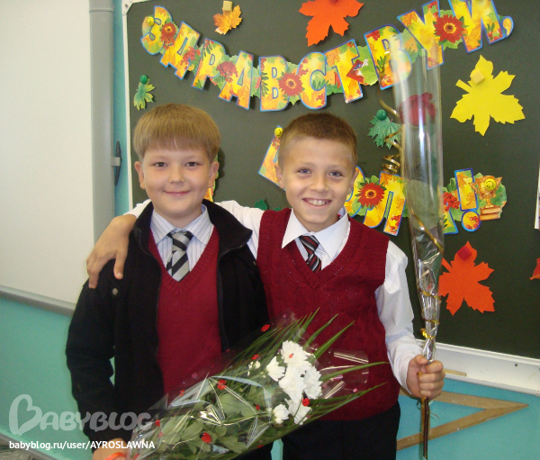 Учительница общая?Так символично...она наверно к нему относится особенно?это почти как бабушка))))
