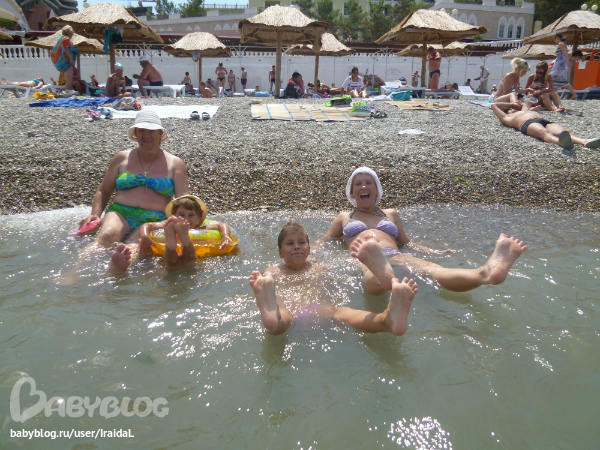 Прибыли, обрадовались, море – через дорогу!!! Набережная – за калиткой!!!! Погода – супер!!!! Оплатили и купаться!!!! И плевать, что 3300 в сутки на шестерых. Зато моя мама сама ходила с детьми на пляж, не боясь никого потерять, захотела домой, ушла, кому в туалет, вот он – рядом. И покушать всегда тоже рядом, вобщем – красота!!! Наш день проходил так. Проснулись, покушали и на море! часиков до 12. Потом мы с мужем в Магнит за продуктами. На мне была вся готовка, честно, 3 раза в день. Обедали и за уроки с Ксешкой, помните 3 тетради на лето задали?)))))кстати, если бы ничего не писали, то не знаю, как в школу пошли бы. Головушка опустела:( за лето, да и в лагере до этого тоже не занималась, конечно.
