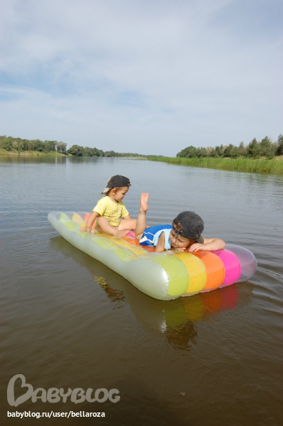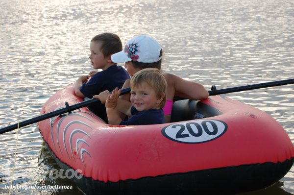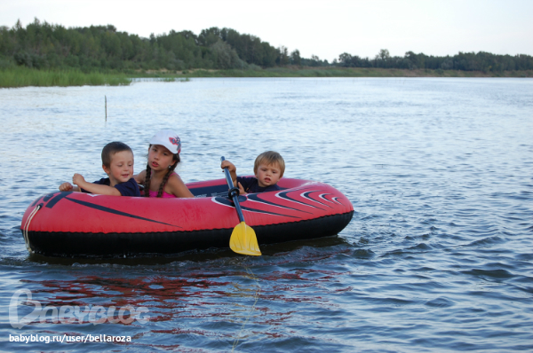 На ней мы отправлялись в далёкие плаванья...Т.е. я шла по речке, орала "Капитан, капитан улыбнитесь" и тащила на длинной бельевой верёвке, привязанной к лодке, довольных детишек)