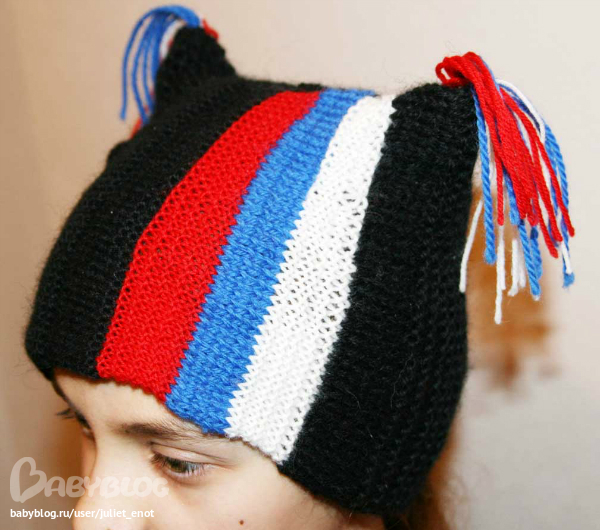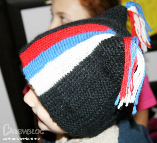 1. Шапка брату :) (но теперь сама хочет носить, больно ей понравилось! А брат не дает - такую красоту разве можно отдать!) :-)))