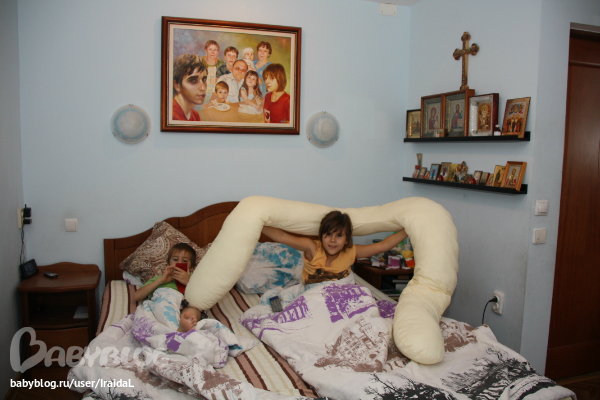Муж так с утра и спросил, а эта колбаса откуда??? Я глаза открываю, одиннадцатый час!!!! В Храм, проспали!!! Ну ладно, да простит меня Господь! Зато мне спалось так прикольно! Единственное, надо еще пару наволочек сшить, чтобы можно было это дело стирать.