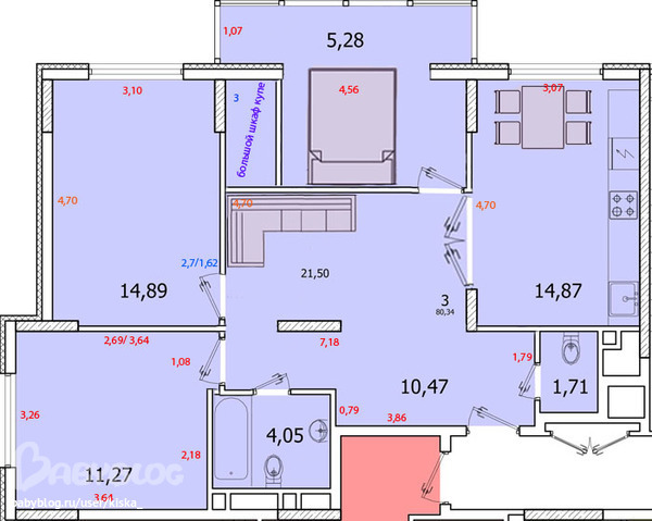 Один большой минус из-за отсутствия коридоров - СЛЫШИМОСТЬ! Если в первоначальном варианте вы могли бы тусить на кухне, то теперь все будет очень слышено детям. Да хотя бы как папа на работц утром собирается или мама ночью готовит )))))