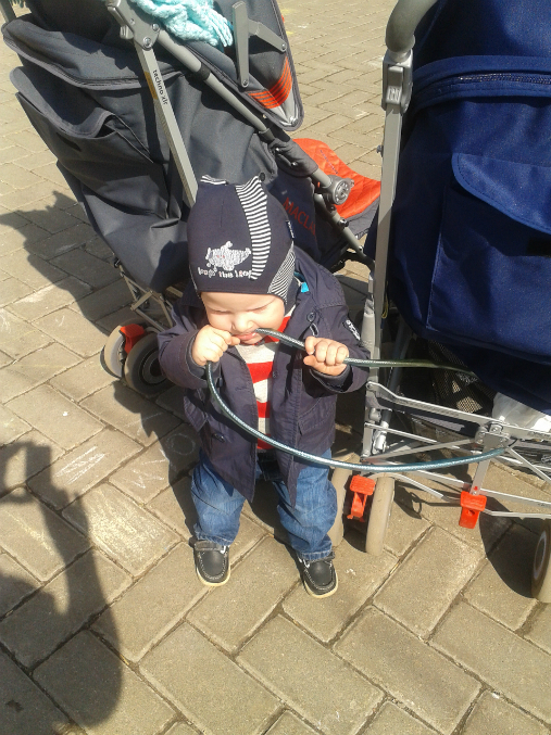 вот колёсико ещё попробую мам и пойдём пробовать песок!!!