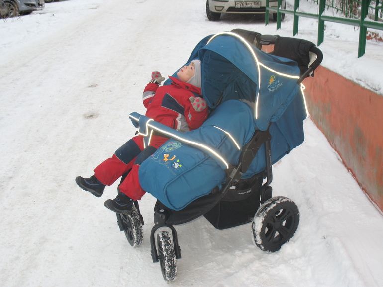 Мобилити ван, конечно по сравнению с навигатором ужасна. Колеса конечно большие, но они по длине очень близко расположены за счет этого, по снегу не очень хорошо идет. козырьки маленькие и слабые и габариты большие. Но конечно и цена у них сильно отличается, поэтому и качество. Но я фила брала еще из-за того, что в ней еще можно и одного ребенка катать. Вот фото мобилити