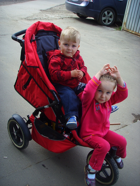 Пользовалась паровозом Грако. Удобная, входит в маленький лифт в разложенном виде. Дешевая. На заднее сиденье устанавливается автокресло, для этого ничего снимать с коляски не надо. Нет амортизации на задних колесах. Со временем более тяжелого ребенка пересадила назад, так легче заезжать на бордюры.Этим летом три месяца катала Фила. В коляску просто влюбилась. Легко едет даже по пляжу. Единственный минус-ширина колесной базы, в московский маленький лифт она не входит. Очень компактно складывается.