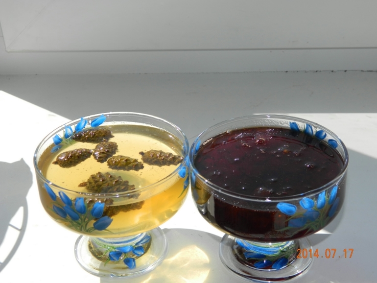 да-да, вместе с крыжовником я варила еще и варенье из шишок! Это что-то потрясающее - запах по всему дому, словно в лесу, аромат такой, что слов трудно подобрать, а уж сколько пользы - тут и несведующему человеку понятно! его и просто с чаем можно поесть, и развести в воде - в жару просто чудесно освежает, а шишечки отлично диззенфицируют полость рта, если их пожевать и помогают укрепить десна! одним словом-кладез пользы и витаминов!