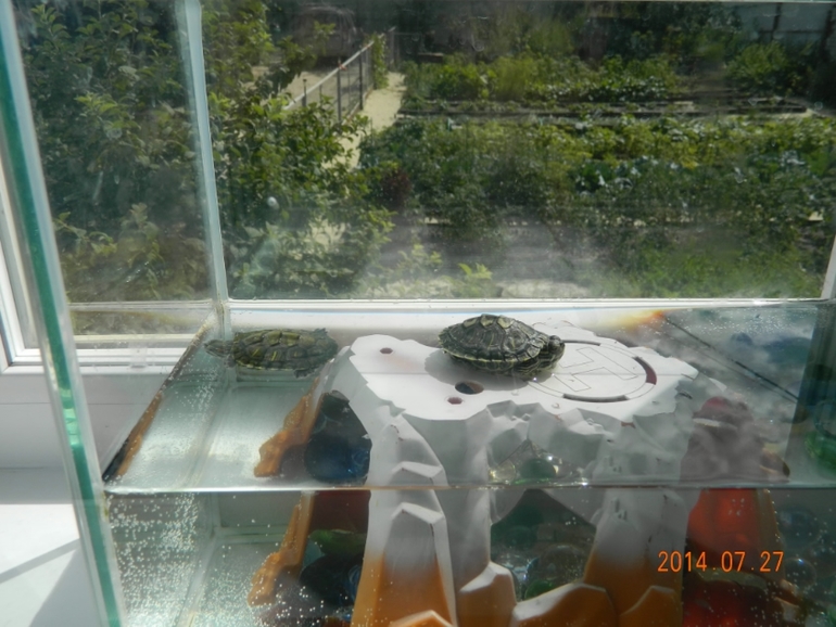 почти два года назад нам сестра отдала трех маленьких черепашек-красноушек, двух мальчиков и девочку. Детворе, по мне, это самый лучший подарок - не кричат, не поют, не гадят по углам, да и заботиться о них одно удовольствие - они даже едят с рук! А еще мы устраиваем гонки черепашьи! И вот сегодня девочки не стало. Не могу сказать, что это неожиданно, она уже месяц не ела, как-то иссохлась, а утром я увидела, что она не двигается уже.