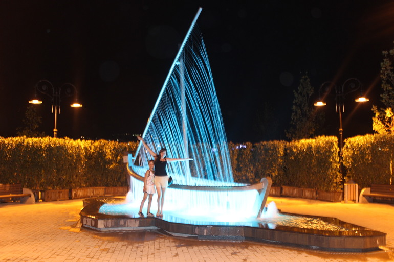 и обедали2500р(порция шашлыка,2 порции котлетка как шашлык готовится,2 фри,пица,литр яблочного,литр томатного сока,кола 0,5,салат с креветками греческий) в городе в кафе.Ночью гуляли в городе.