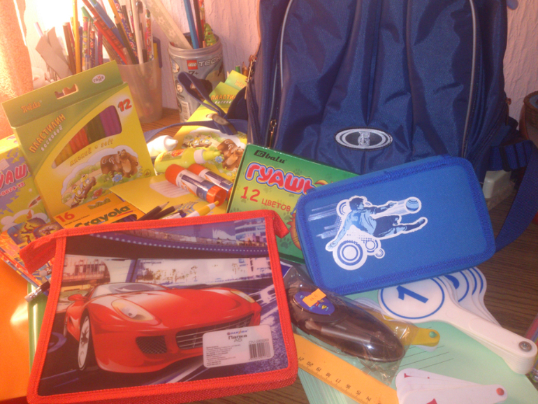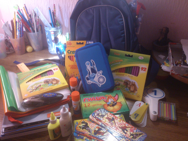 По сему сегодня же с утречка мы с мелкими - ноги в руки! - и накупили всякой всячины к школе. И даже тетрадки - новые!!!! Это ещё не весь список)) Да, и одежду-обувь мы купили чуть раньше. Кстати, Мартину всё новое. Ну, кроме белой рубашки. Сколько они её носят, белую-то....