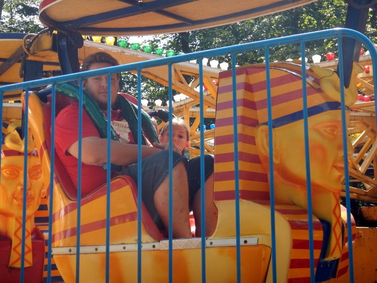 Первым аттракционом, на который Мелания затащила папу - "Фараон". (Обычная центрифуга). Они были в восторге))